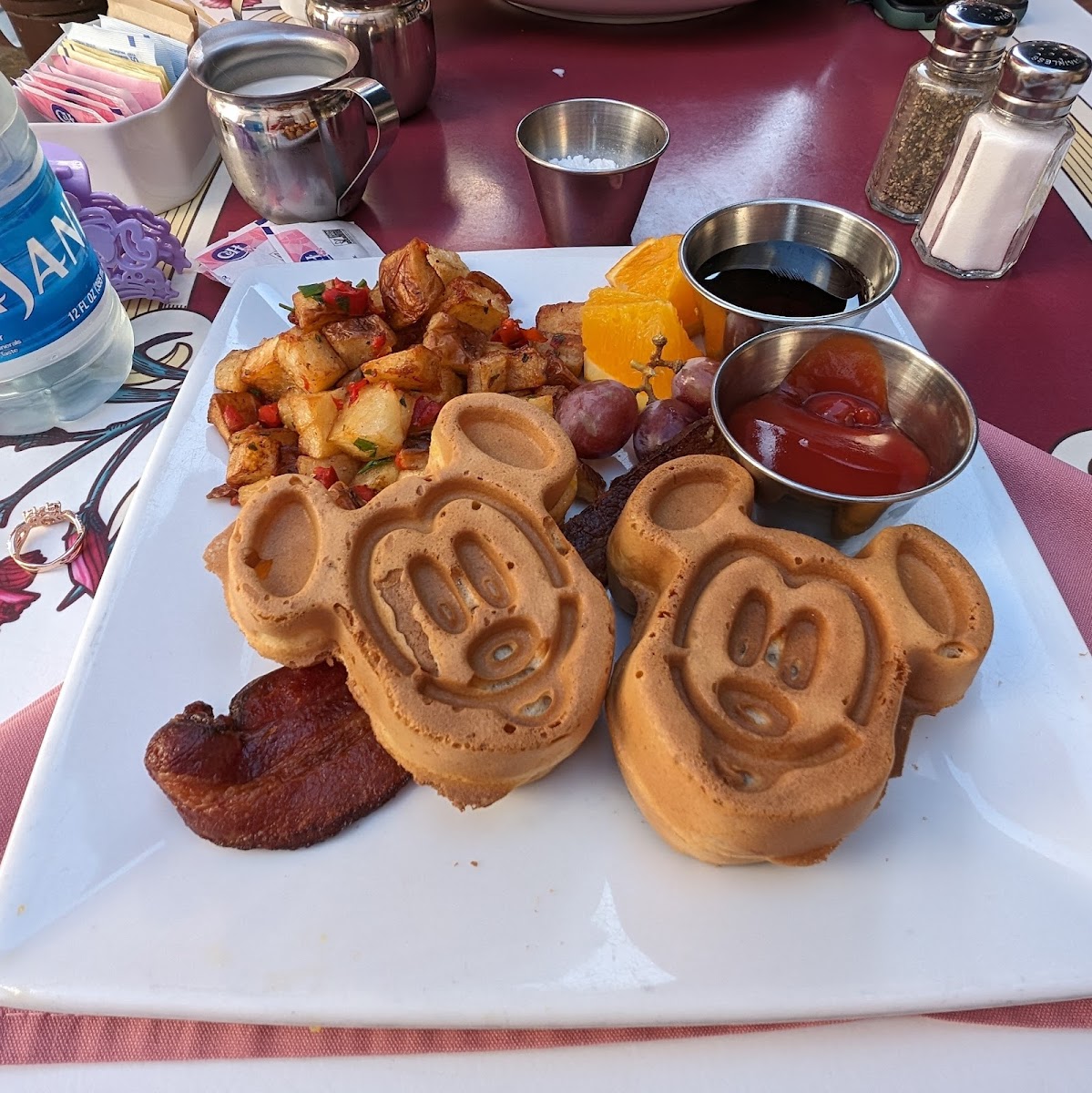 Vegetarians will find solace in the Veggie Skillet, which features fluffy three-cheese scrambled eggs paired with allergy-friendly breakfast potatoes, embodying that classic brunch feel. And don't miss the chance to enjoy Mickey-shaped Waffles, made with allergy-friendly batter, served with bacon and seasonal fruit—a delightful option for kids and adults alike.